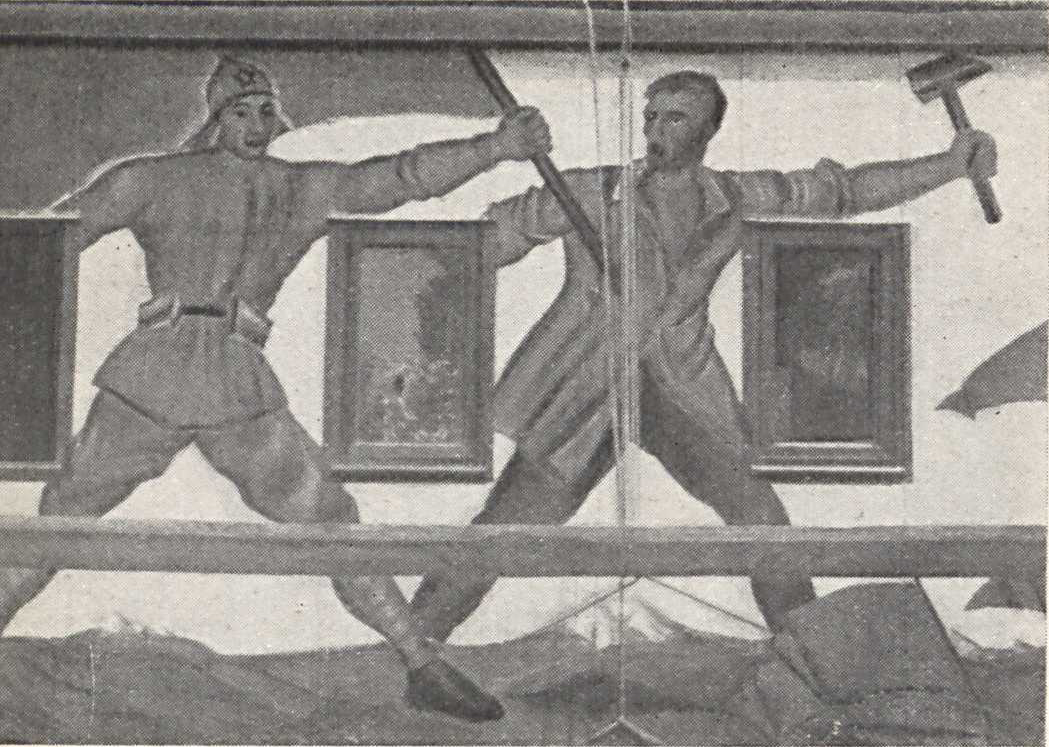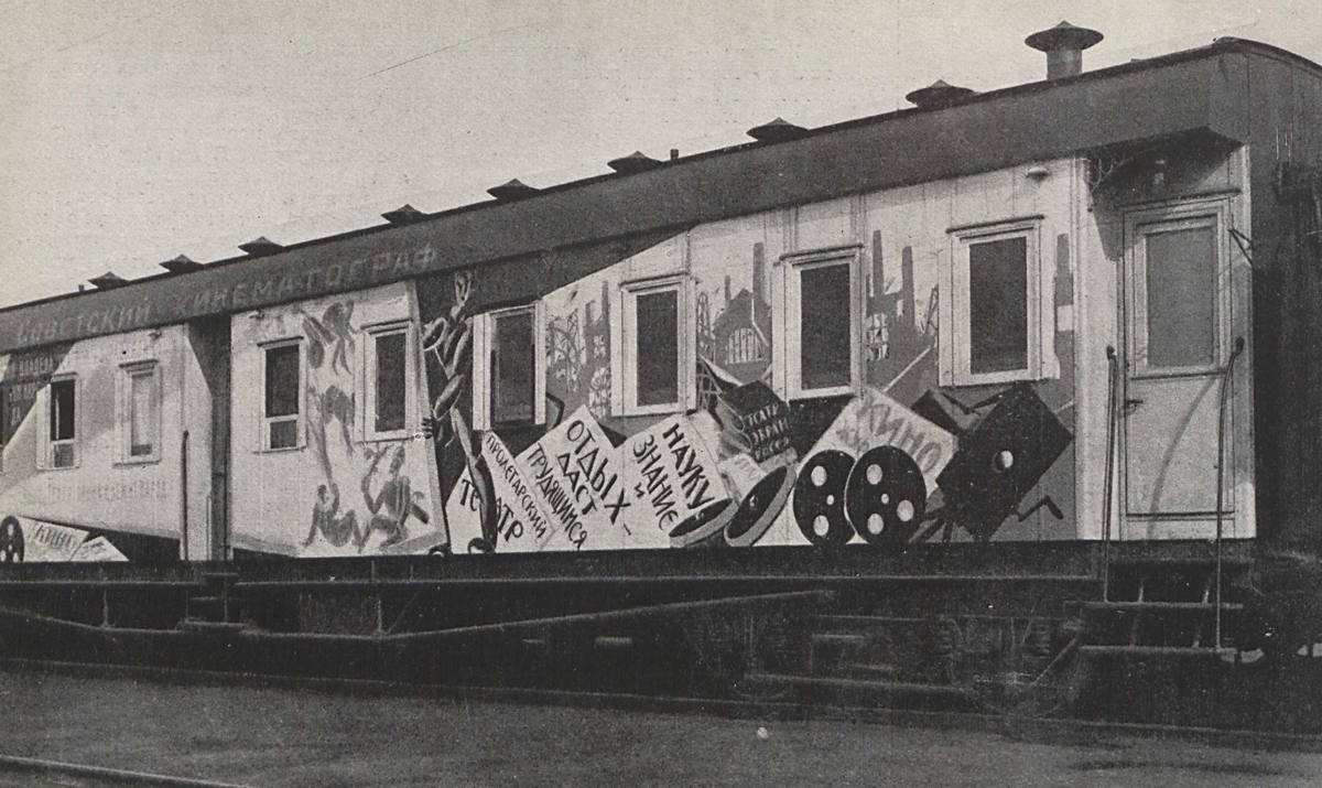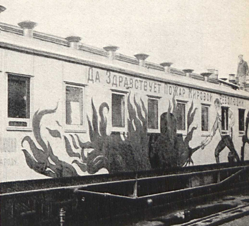В первые послереволюционные годы возникла и получила очень интересное развитие своеобразная форма монументальной живописи — росписи агитпоездов и агитпароходов.