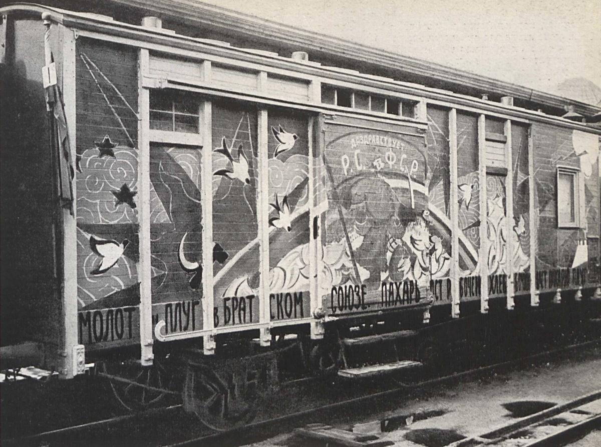 Вагон агитпоезда «Красный железнодорожник». 1920