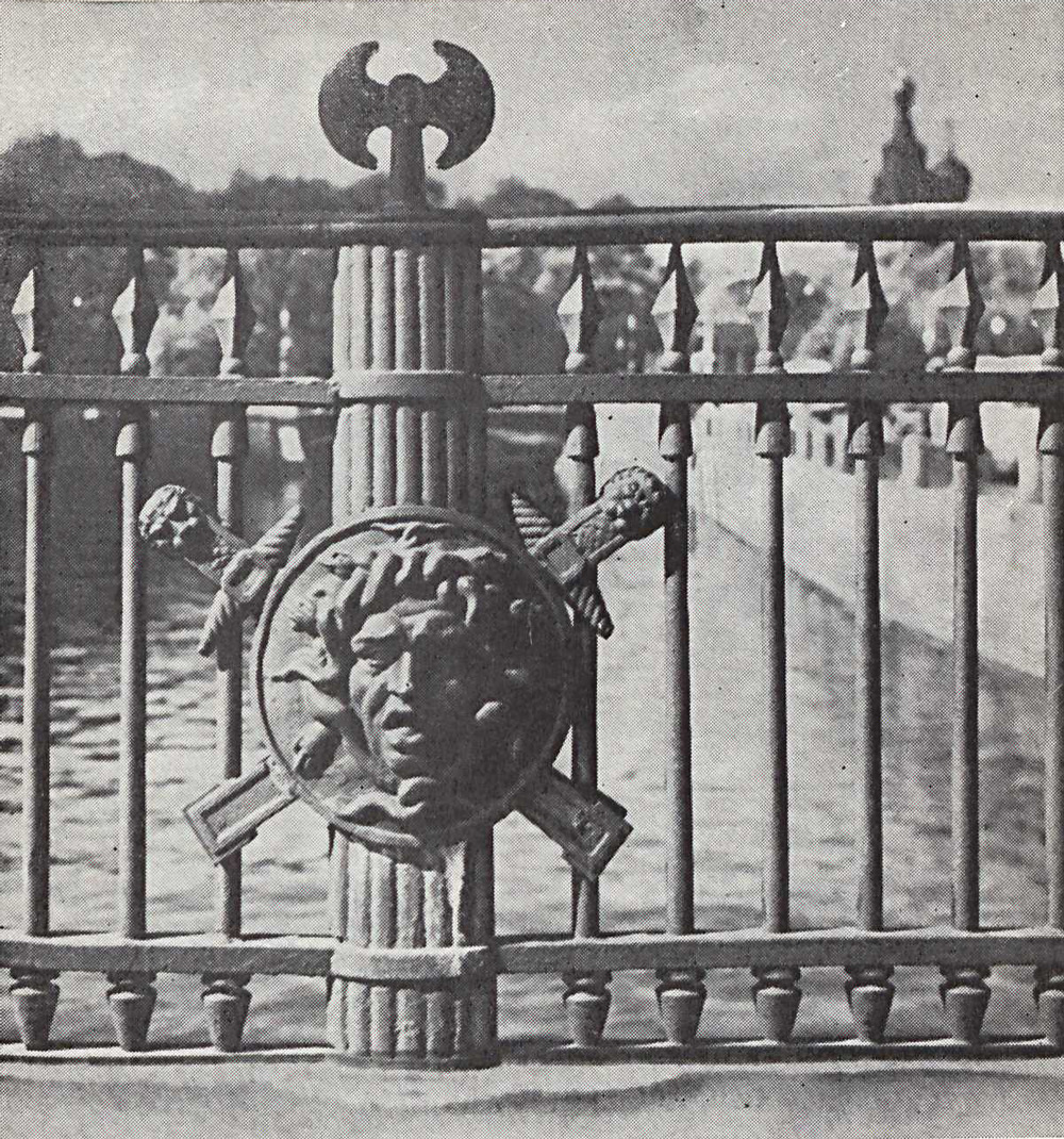 Изображения античного оружия — иногда документально точные, иногда стилизованные — включены в композицию решеток и фонарей еще нескольких мостов, сооруженных в 1830-х годах вблизи Марсова поля и Инженерного замка: Второго Инженерного моста, Нижне-Лебяжьего и Первого Садового. Не исключено, что архитектурный облик этих сооружений создавался при участии выдающегося русского — зодчего К. И. Росси (или хотя бы при его консультации). Напомним, что весь этот район был полностью перепланирован по проекту Росси; в проекте было намечено и расположение новых капитальных мостов. Декоративная отделка мостов напоминает «почерк» Росси, а решетки Нижне-Лебяжьего и Первого Садового мостов очень похожи на композицию нижней части ворот Михайловского дворца, нынешнего Русского музея, созданных по проекту Росси.