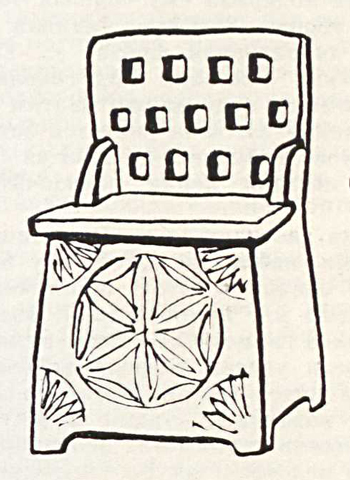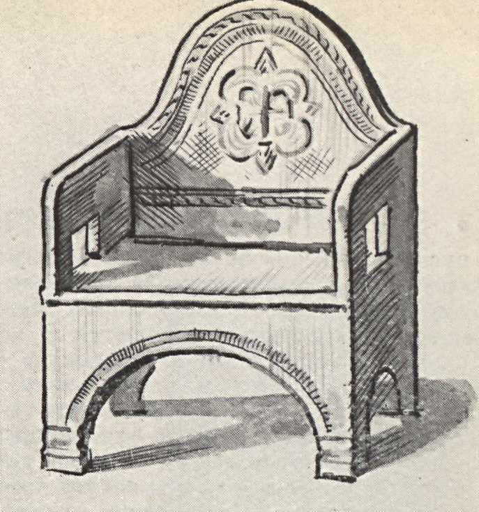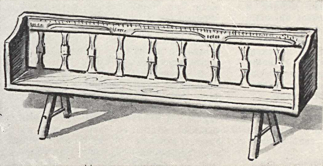 В таком интерьере, кроме встроенных, а они наверняка были, находят место переносные лавки-скамьи с невысокими спинками, зачастую украшенными орнаментом. Большинство из них имело простые монументальные формы, соразмерные с интерьером и человеком (длина спинок около двух метров).