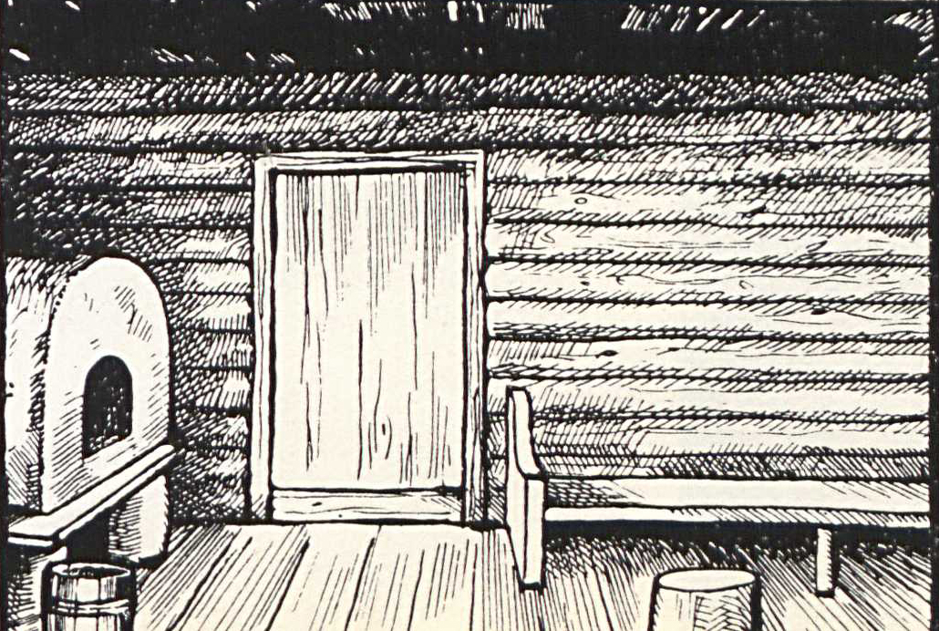 Прежде всего это мощность, крупногабаритность сооружений. Толща стены не нарушается низкой, толстой, хорошо отесанной, плотно подогнанной к дверному проему дверью. За массивным порогом — распластанная, почти квадратная, почерневшая от дыма изба. Стены, сделанные из гладких, тщательно пригнанных бревен с проконопаченными мхом пазами, хорошо держат тепло.