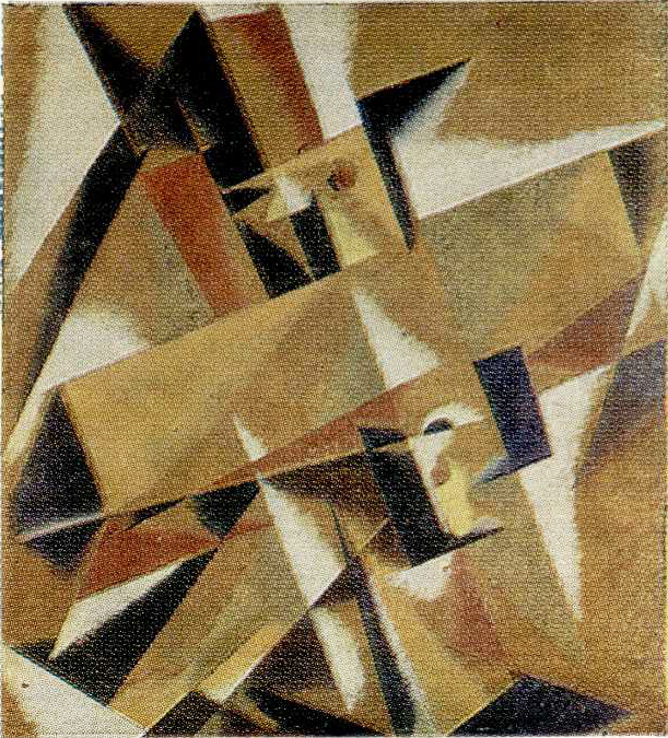 Как бы учитывая опыт татлинского подхода к «работе материалов», Л. Попова строит свои полотна из элементов, не только обладающих цветодинамическими качествами, но получивших в силу цветовых характеристик отчетливую, едва ли не материальную весомость. Ее цветовые плоскости обладают моментом натуральности: в изгибах форм нам чудится упругость отгибающихся листов Металла, картона и т. п. Характерно, что эти качества возникают из чисто живописной фактуры, лишенной в тот период присыпок, наклеек, и других приемов, снижающих своей иллюзорностью идеальность живописи.