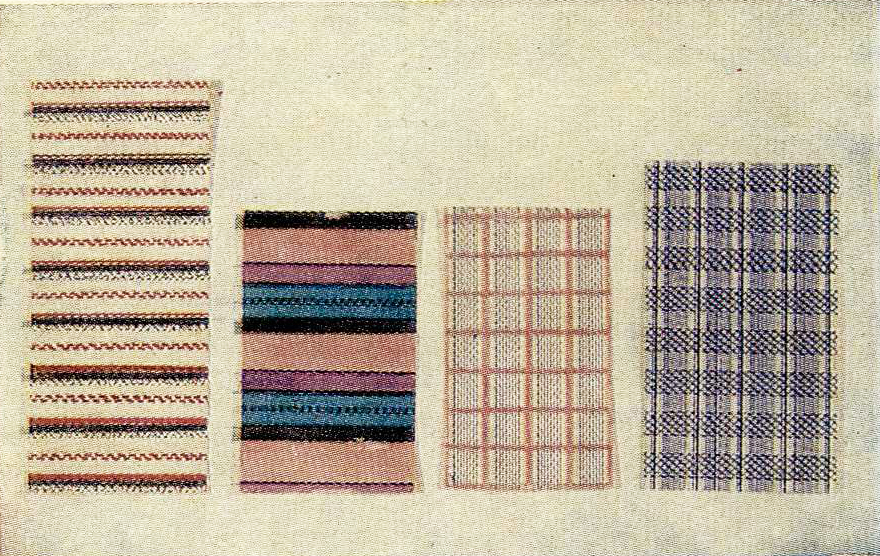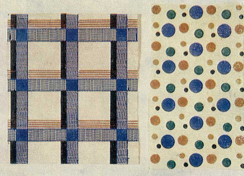 Характерно, что в отличие от живописных построений узоры тканей художника-конструктора Л. Поповой всегда правильны и строго геометричны. Мы не встречаем в них никаких аналогий «цветовым узлам» супрематической живописи Поповой, которые оказались, однако, вполне естественными, например, для тканей 60-х годов с их неправильной, нерегулярной компоновкой цветовых плоскостей. Попова не обыгрывала фактуры текстиля (она почти невыразительна в — ситценабивном производстве), сохраняя представление о правильной, «регулярной» основе плетения ткани, подчиняя ей свой узор. Это чувство технологии особенно отчетливо выступает в очень простых и неброских полосатых и клетчатых узорах, сохраняющих эффект переплетения нитей. Здесь парадоксальным образом сливаются геометризм живописи тех лет и конструктивный геометризм народного ткачества.