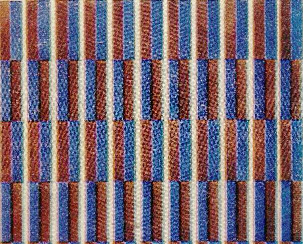 Как и там, это достигалось в тканях точностью соотношения основного тона и наложенных цветовых решеток.