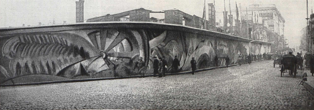 Революционные празднества 1918 года раскрывают перед нами своеобразную картину становления советской художественной культуры на самом первом этапе ее развития. Новое понимание задач искусства и новые условия его восприятия оказали преобразующее влияние на творчество всех художников, искренне принявших революцию, от мастеров академической школы до представителей самых левых течений. Этот своеобразный процесс интересно проследить на анализе ряда панно, украшавших московские улицы в первую годовщину Великого Октября.