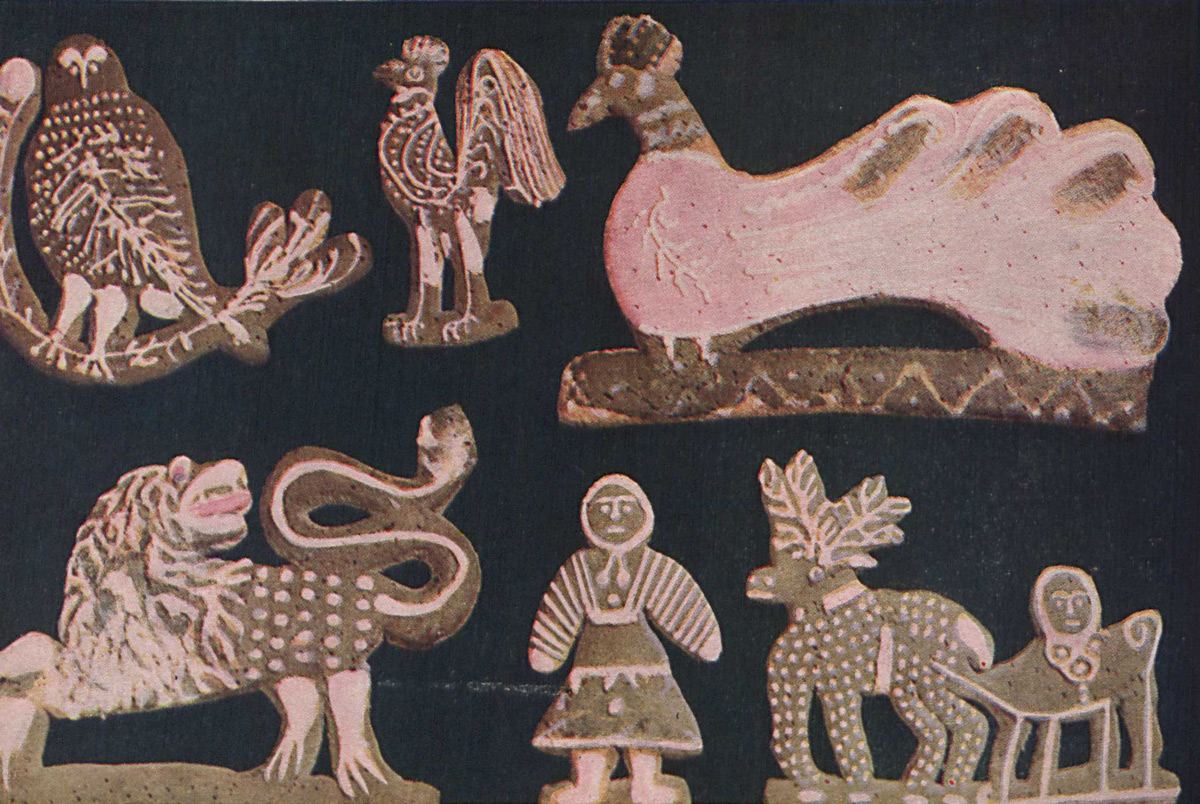 К третьей, малочисленной группе пряников, как уже указывалось, относятся фигуры, вылепленные из теста вручную, без применения каких-либо форм. К этому виду пряников относятся холмогорские и мезенские козули.