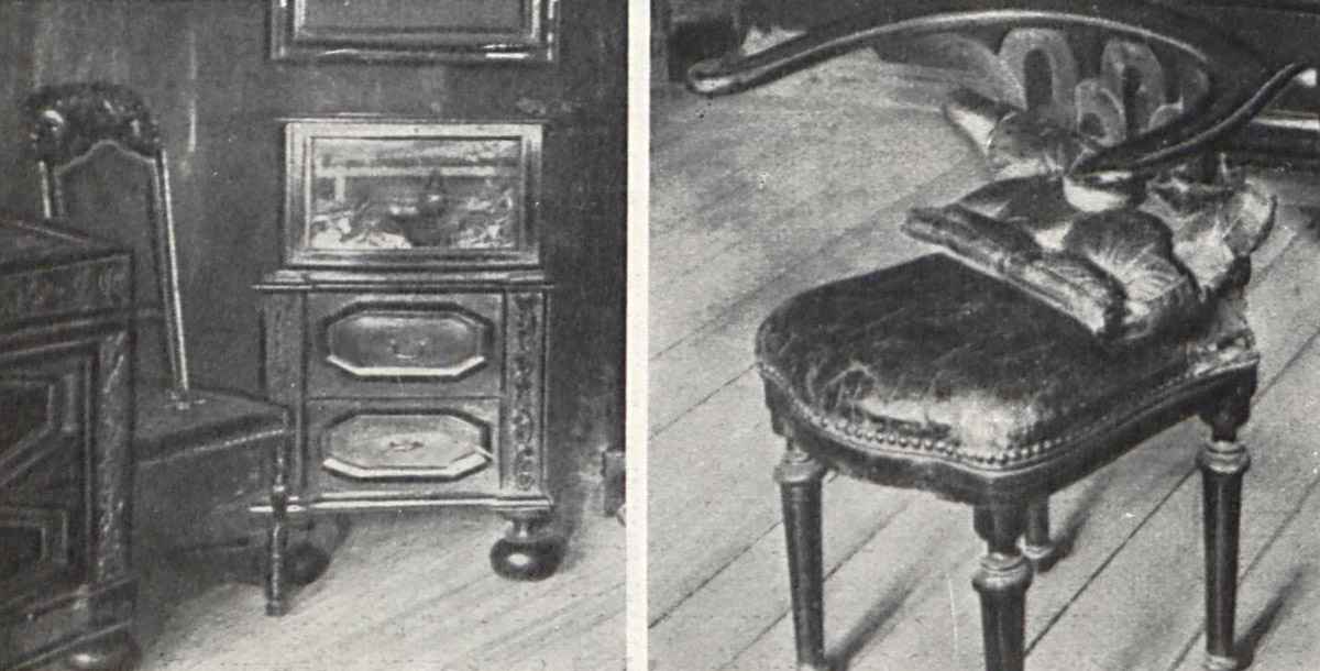 И, наконец, мебель, обстановка обихода, которая, собственно, и очеловечивает любой хорошо сохранившийся интерьер. Восстановить ее трудно, ибо собственно мебели, «приписанной» к той или другой комнате, осталось очень немного: два-три шкафа, несколько зеркал, в том числе одно в раме, резьба которой собственноручно выполнена Петром. Но, прибегая к аналогиям, мы можем восстановить и меблировку петровского интерьера.