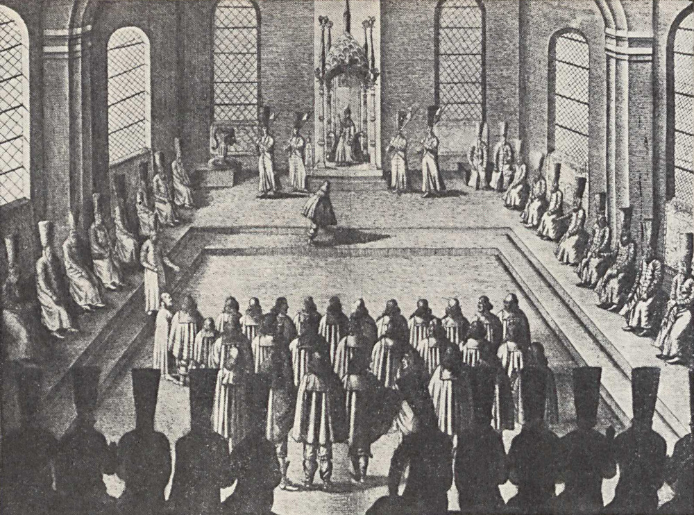 Гравюра из книги Адама Олеария. Прием русским царем немецкого посольства
