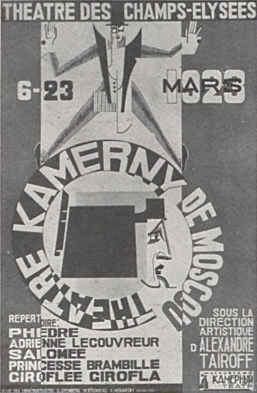 В. и Г. Стенберг, К. Медунецкий. Плакат гастрольной поездки Камерного театра в Париж. 1923