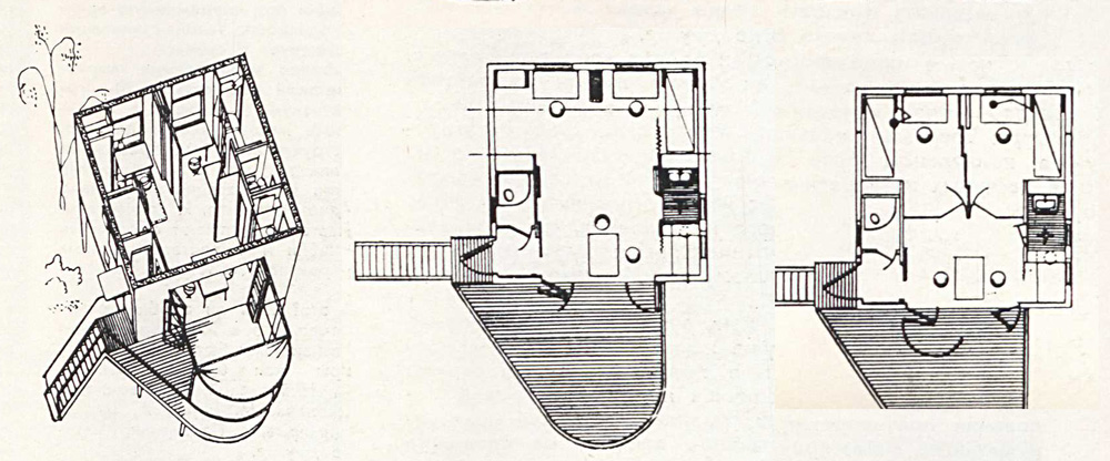 Во всех поданных на этот конкурс проектах (1927), в соответствии с программой конкурсов, наряду с развитой коммунальной частью предусматривались для каждой семьи отдельные изолированные квартиры, связанные с общественными помещениями теплыми переходами. Причем наряду с поисками путей приближения культурно-бытовых учреждений повседневного пользования к жилью авторы проектов стремились создать экономичные малометражные квартиры, чтобы не увеличивать общую стоимость дома при выделении значительной части его объема для коммунальных помещений.