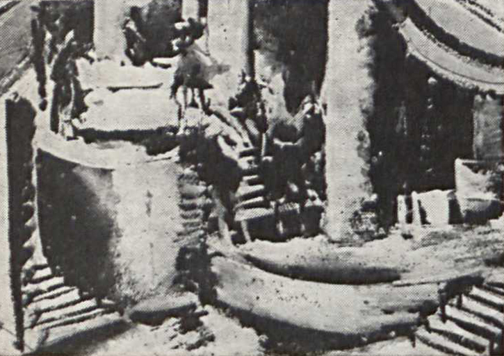 Разумеется, А. Экстер, заменившая А. Веснина, должна была и сделала более пышное, более барочное и более декоративное оформление, чем предложил он. «...Чем могла дышать в этом фанерно-тряпичном неистовстве история двух несчастных любовников? — Она задыхалась». Но и А. Веснин, по-видимому, не остался равнодушным к навязанному ему обстоятельствами творческому соперничеству. Он сам сделал попытку создать откровенно декоративное оформление театрального спектакля «Жемчужина Адальмины», премьера которого состоялась летом того же 1921 года (то есть вскоре после премьеры «Ромео и Джульетты») и которым дебютировал вновь созданный Московский театр для детей.