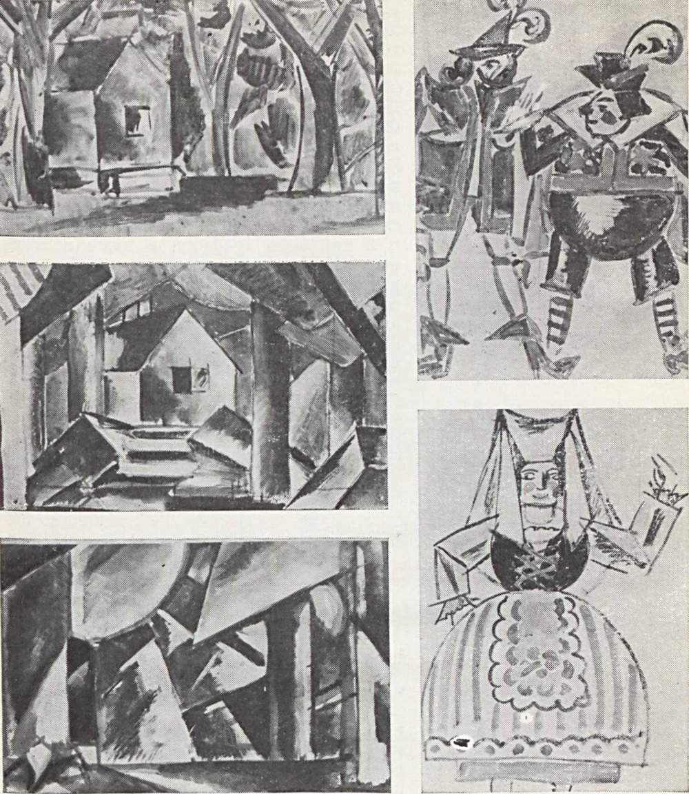 В эскизах всех этих трех спектаклей трудно заметить, что их выполнял художник, который в 1919—1920 годах занимался интенсивными художественными поисками в сфере левой живописи.