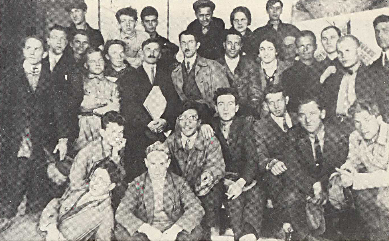 На фото: Группа студентов архитектурного факультета ВХУТЕМАСа. Сидят: крайний слева Г. Крутиков, крайний справа Г. Кочар.