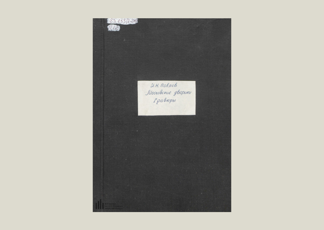 1925 годСерия линогравюр Ивана Павлова, посвящённая московским дворам, с вступительной статьёй искусствоведа Владимира Адарюкова.